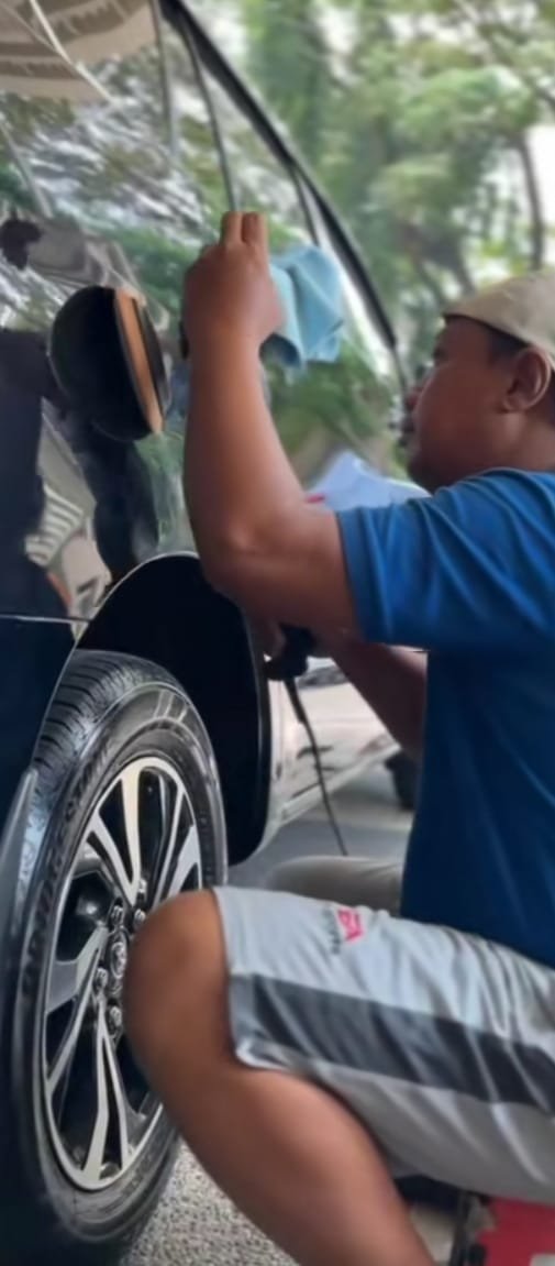 Layanan perawatan eksterior kami meliputi cuci, poles, dan waxing mobil untuk menjaga kilau cat dan melindungi dari goresan, debu, dan noda.